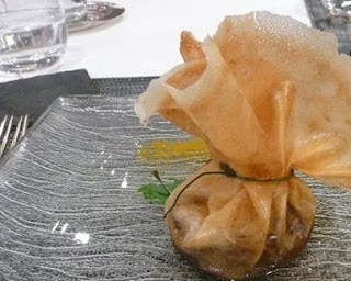 The menu changes every night and you need to reserve a table in advance. Lunch is 15 euros, dinner 24 euros. I had a small crème brulée with parmesan and tomato, then duck liver and apple in a brick (photo), followed by a millefeuille with pilgrim mussels. Dessert was chocolate filled macaroons with mascarpone ice-cream. Truly delicious!